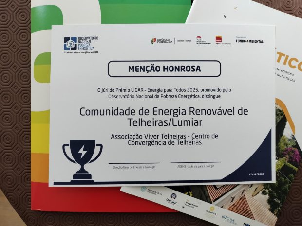 A Comunidade de Energia Renovável de Telheiras/Lumiar, promovida pela Parceria Local de Telheiras e pela Junta de Freguesia do Lumiar, recebeu uma menção honrosa na primeira edição do Prémio Ligar – Energia para Todos, atribuído pelo Observatório Nacional de Pobreza Energética.